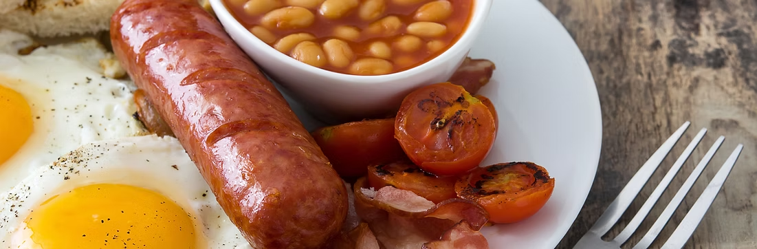 Grilled bacon, fried egg, cumberland sausage, grilled tomato, baked beans, hash brown & mushrooms.